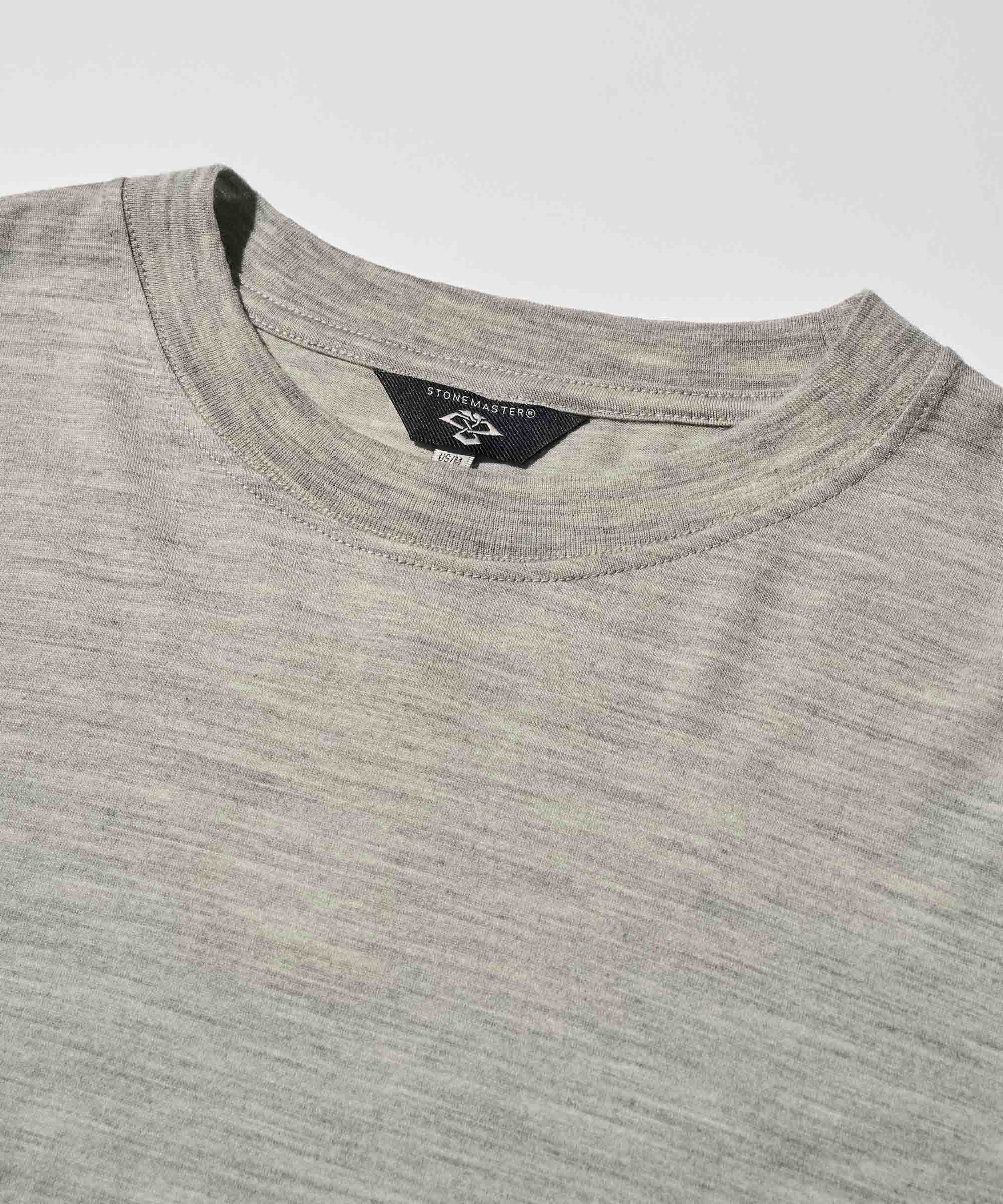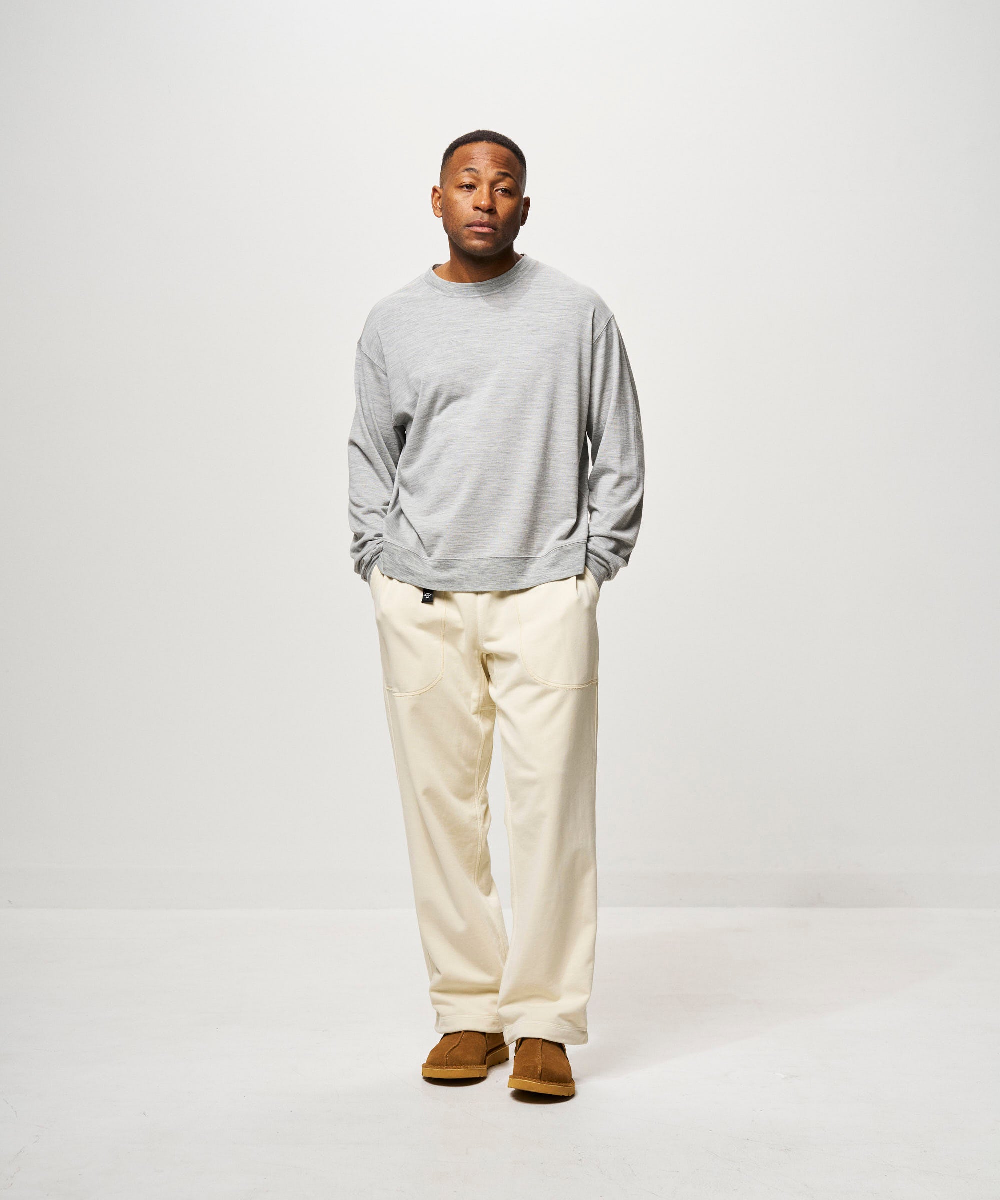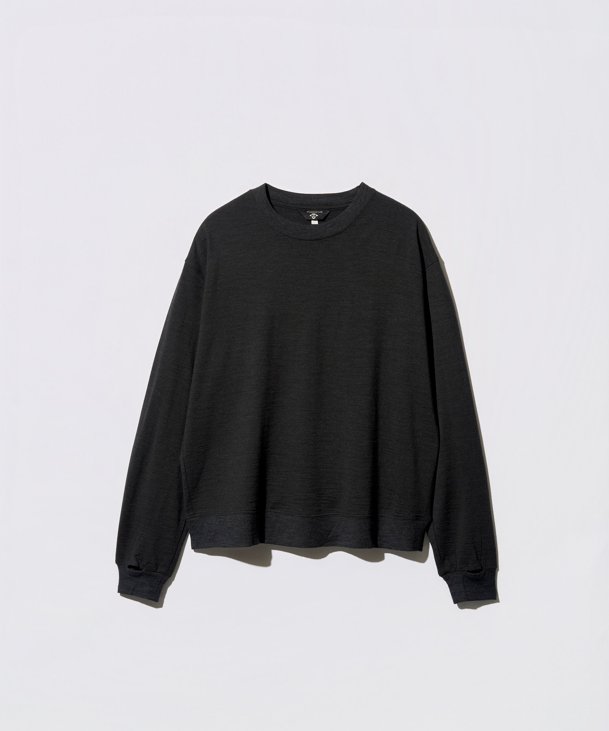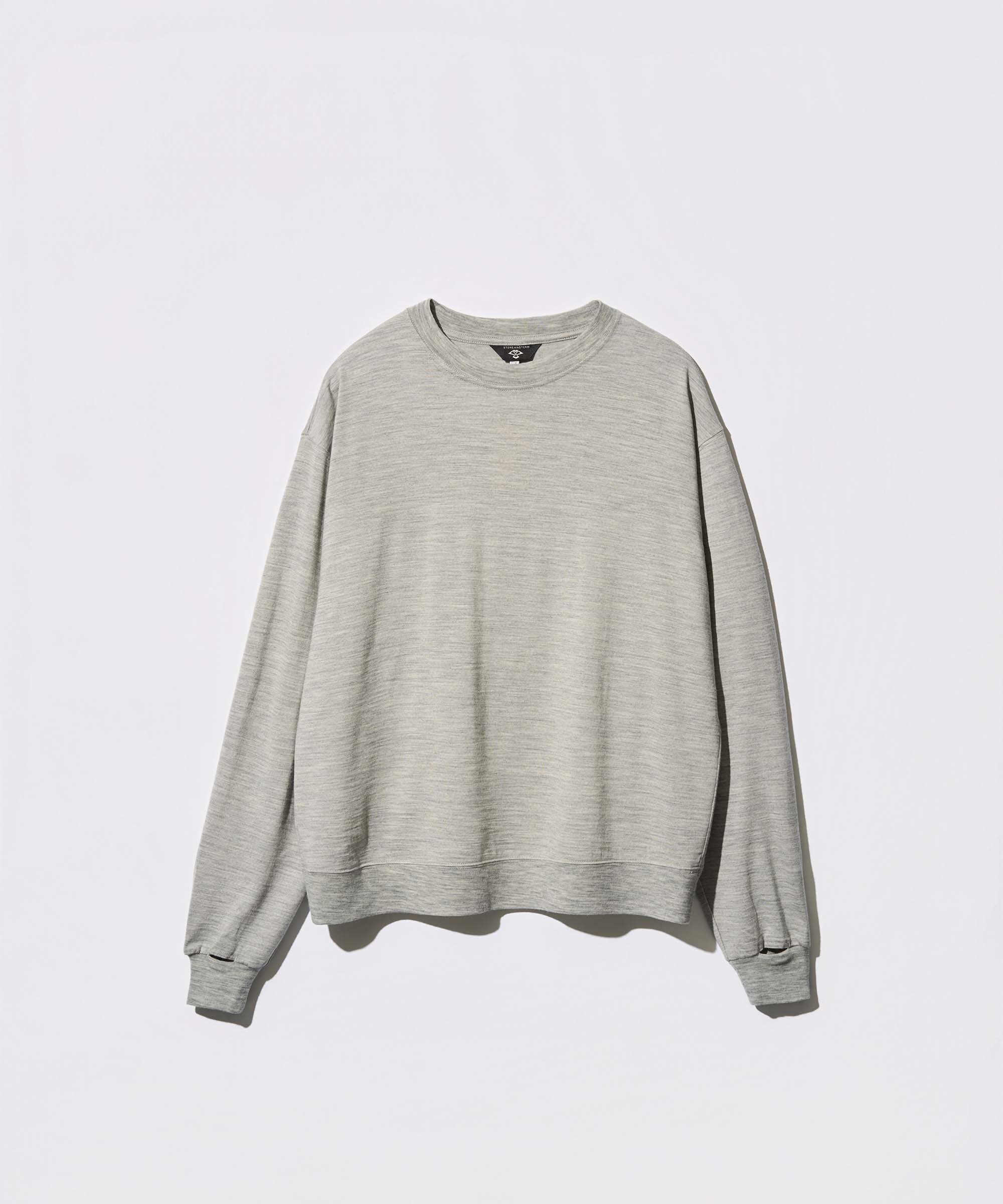 クルーネックスウェット調のデザインを取り入れたウールロングスリーブTシャツ。